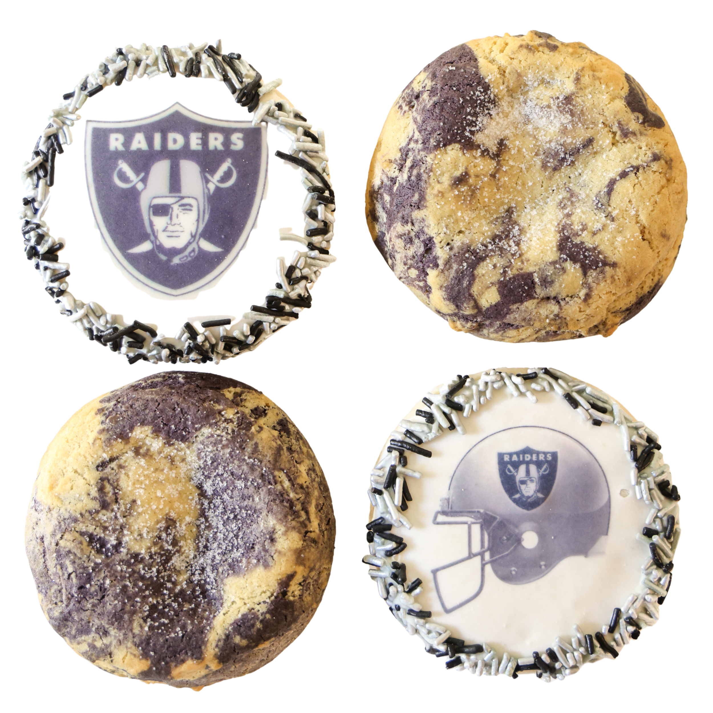 Silver & Black Swirl: A decadent chocolate chip cookie with a swirl of silver and black icing, representing the Raiders' iconic colors.